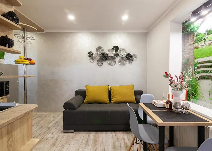 Alfa Apartments Kniazia Leva 2 Leópolis tiene vistas a la ciudad y está situado a tan solo 6 minutos a pie del Farmacia-Museo de Leópolis. El apartamento está a tan solo 600 metros de Lviv Town Hall y a una distancia moderada de Peter and Paul Church of the Jesuit Order.